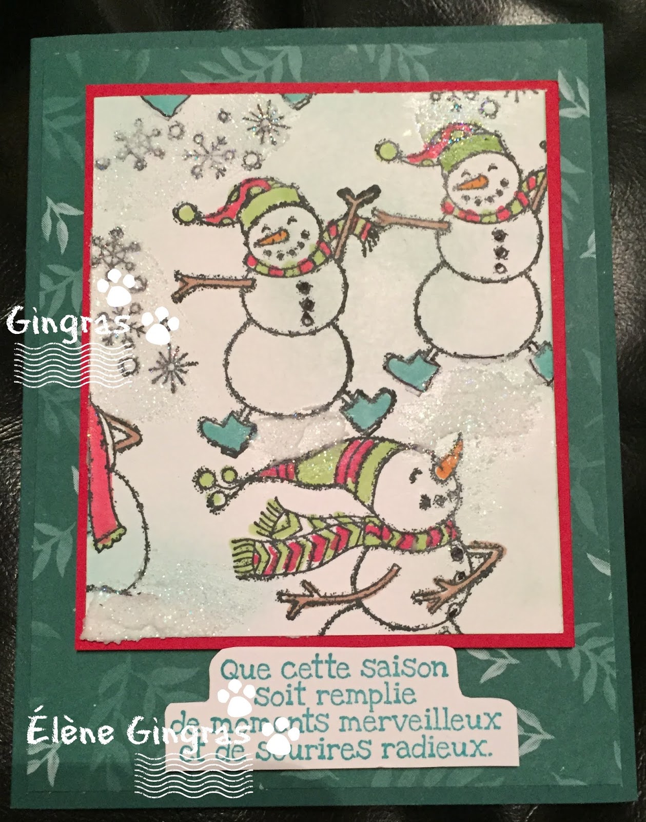 Pour que la carte-cadeau tienne en place, j'ai apposé un mini dimensionnal. À l'arrière, j'ai collé un carton blanc pour les voeux.