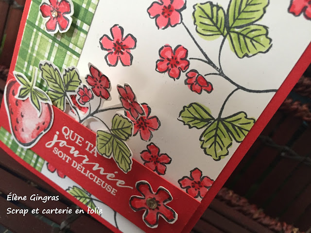 J'ai utilisé le magnifique jeu d'étampes Parfum de fraise du mini-catalogue 2021 et le papier design Baies délicieuses (prime gratuite Sale-a-Bration).